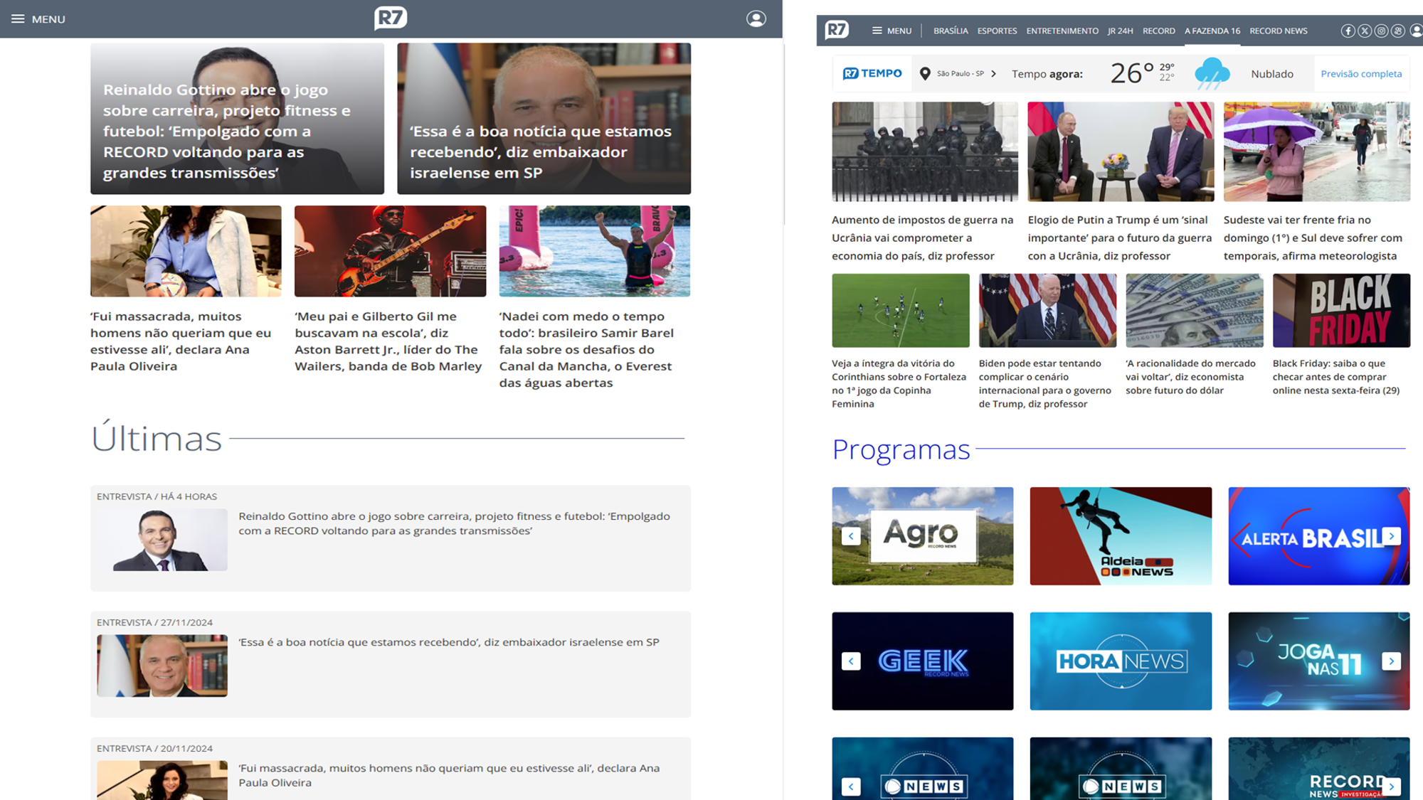 Entrevistas Exclusivas: As melhores entrevistas são divulgadas na íntegra na página do programa no Portal R7.