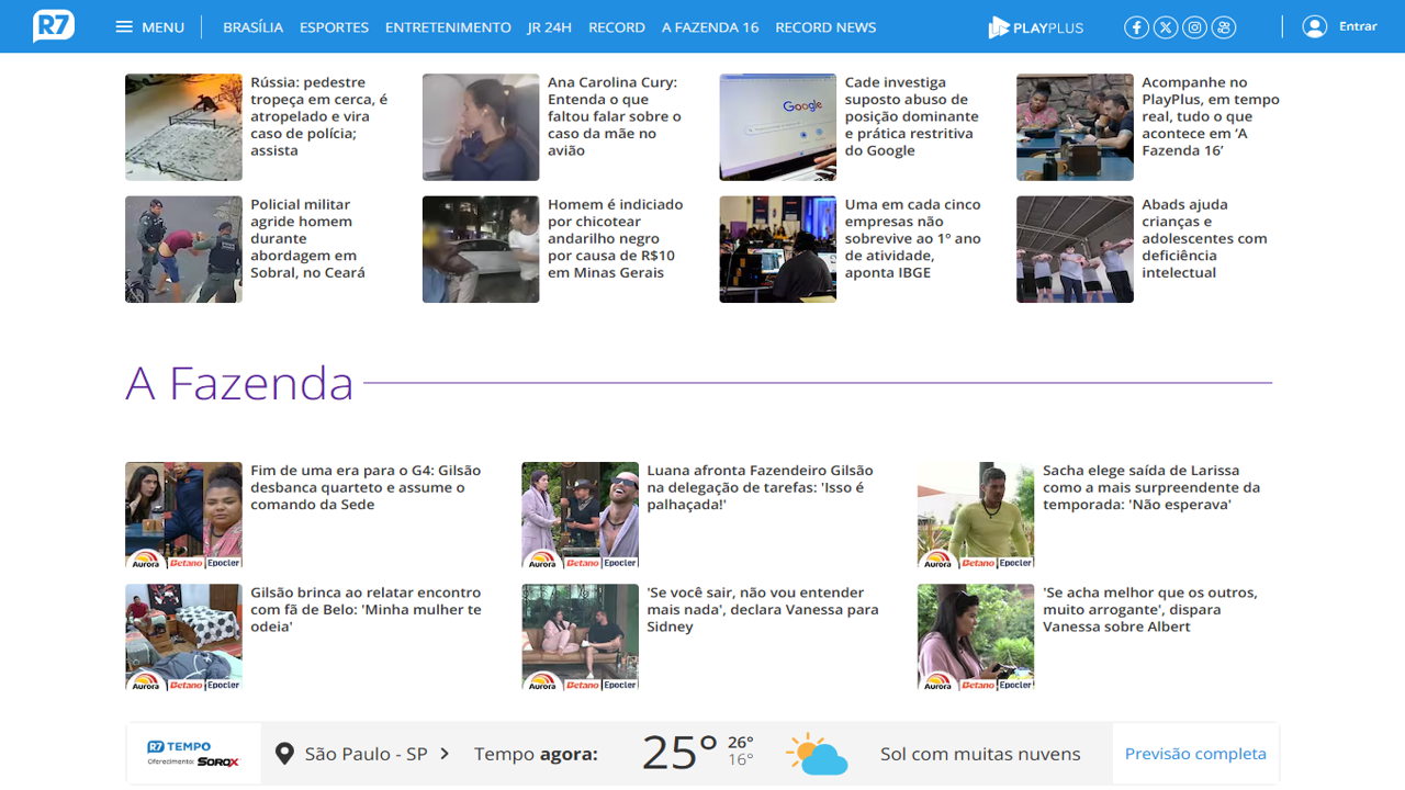 O portal R7 vive um momento de comemoração. No último mês, o site de notícias do Grupo Record registrou crescimento de 10% em comparação ao mês anterior, chegando a aproximadamente 100 milhões de visitantes únicos no período. Os dados são baseados no ranking do ComScore.